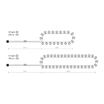 Pielęgnacja i czyszczenieUszkodzone żarówki należy wymieniać niezwłocznie, aby uniknąć niewłaściwego napięcia w łańcuchu świetlnym. Do każdej kuli należy używać odpowiedniej żarówki.