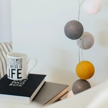 Z Kule świetlne Irislights Gotland łatwo stworzysz nastrojową atmosferę w pomieszczeniu. Girlanda składa się z lampek LED i ręcznie wykonanych kul w różnych kolorach. Gotland ma elegancką paletę kolorów z kulami w odcieniach musztardowym, szarym i białym. Girlanda ma wyłącznik i może być umieszczona w wielu różnych miejscach, na przykład w oknie lub wokół lustra, gdzie jest równie dekoracyjna zgaszona, jak i zapalona! Wybierz spośród różnych rozmiarów.