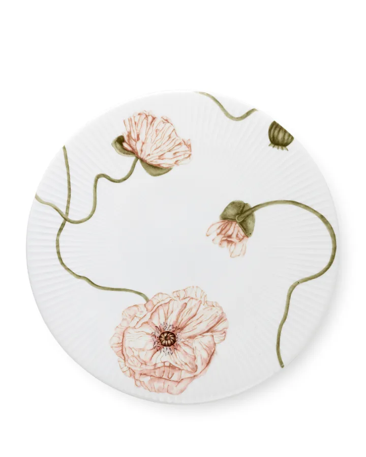 Patera Hammershøi Poppy Ø30 cm ma delikatny motyw przedstawiający maki, stąd nazwa serii „Poppy”. Organiczna forma maku wijącego się po żłobionym wzorze Hammershøi dodaje warstwę elegancji. Wszystkie ilustracje maków z serii Poppy zostały zaprojektowane przez Rikke Jacobsen i każda z nich jest inna, tworząc razem piękny asymetryczny bukiet na stole. Uzupełnij innymi produktami z serii lub połącz z klasycznie całym białym porcelaną z serii Hammershøi.