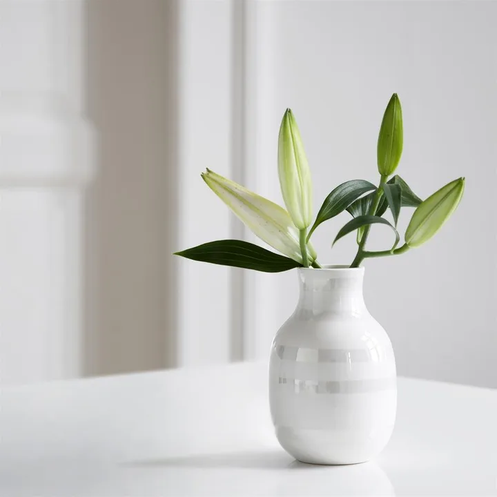 Wazon Omaggio perłowy z Kähler to ręcznie malowany wazon z serii Omaggio, zaprojektowany przez Ditte Reckweg i Jelenę Schou Nordentoft. Dzięki wyraźnym liniom i eleganckiej formie stanowi piękny element dekoracyjny w domu, równie atrakcyjny solo, co w towarzystwie innych wazonów i misek. Idealny zarówno do ciętych kwiatów, jak i jako dekoracyjny detal na półce lub stoliku — ponadczasowy element nadający pomieszczeniu charakter i przytulność.