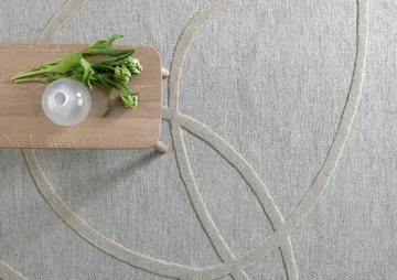 Dywan wełniany Verbena to prostokątny dywan wykonany w 80% z wełny i 20% z lnu. Ten ręcznie tkany dywan ma organiczny wzór z frędzlami inspirowany trzema nakładającymi się pierścieniami, przypominającymi diagram Venna, co nadaje mu miękki i niepretensjonalny wygląd.
