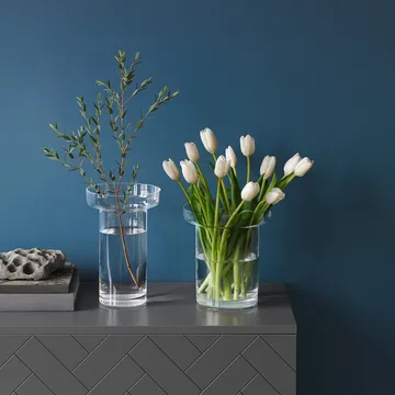 Wazon Limelight Tulip 19,5 cm od Kosta Boda to elegancki wazon zaprojektowany przez Görana Wärffa, który podkreśla tulipany i inne kwiaty cięte dzięki perfekcyjnie wykończonemu kołnierzowi. Nieco niższy kształt sprawia, że jest idealny do szerszych bukietów, a masywne dno z optycznym efektem łapie światło i ożywia kompozycję. Piękny detal na stole jadalnym lub parapecie, który sprawia, że codzienne chwile z kwiatami stają się bardziej świąteczne i osobiste.