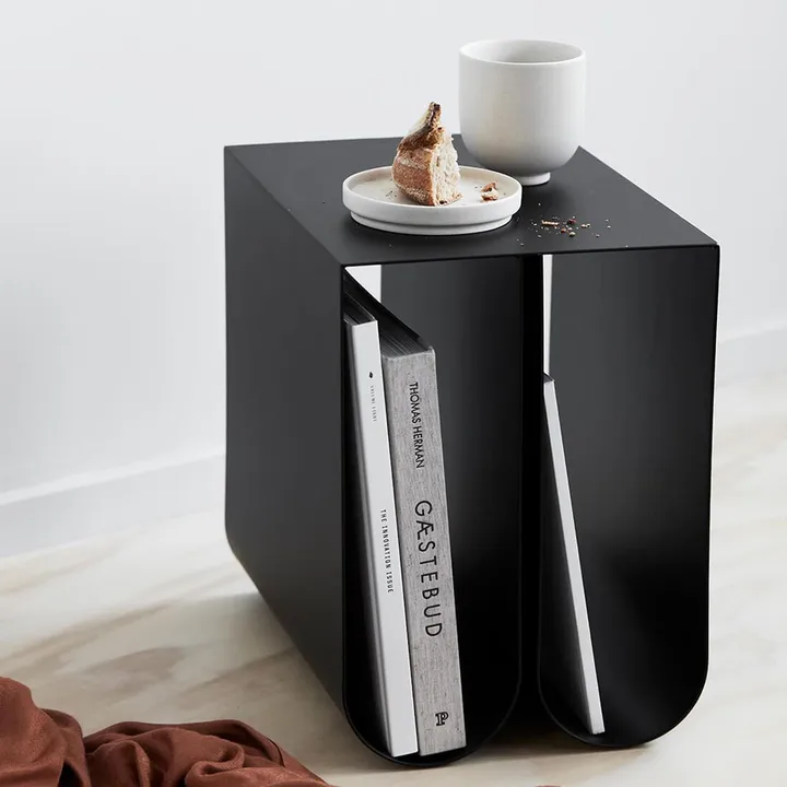 Curved boczny stolik od Kristina Dam Studio łączy rzeźbiarskie formy z funkcjonalnością. Wykonany ze stali nierdzewnej, ten stolik boczny oferuje praktyczne rozwiązanie do przechowywania czasopism i innych drobiazgów. Proste linie mebla sprawiają, że pasuje do różnych wnętrz, a trwały materiał zapewnia długą żywotność. To doskonała równowaga między formą a funkcją.