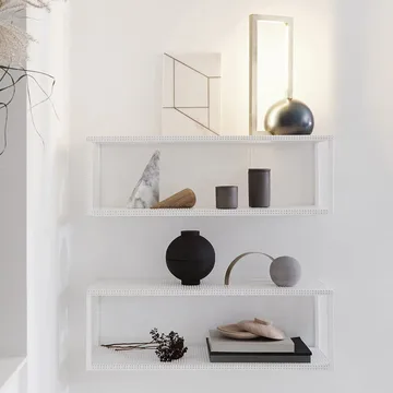 Grid półka ścienna od Kristina Dam Studio jest wykonana z wysokiej jakości stali pokrytej proszkowo i jest dostępna w kolorze czarnym lub białym. Przechowuj wszystko, od książek po akcesoria kuchenne, na tej dyskretnej półce i maksymalnie wykorzystaj przestrzeń na ścianie.