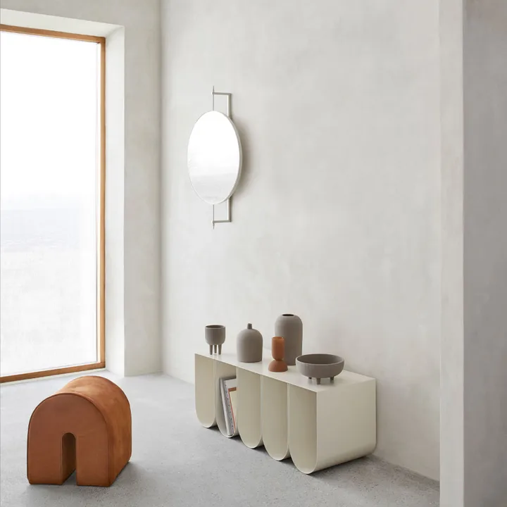 Rotating Lustro od Kristina Dam Studio to duże lustro ścienne zaprojektowane do przedpokoju, salonu lub łazienki. Dzięki funkcji obrotu możesz łatwo zmieniać perspektywę, co czyni je zarówno praktycznym, jak i dekoracyjnym. Rama występuje w wersji malowanej proszkowo lub ze stali nierdzewnej, dostępne są dwie różne rozmiary, aby dopasować je do Twojego domu.