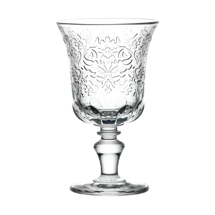 Kieliszki do wina Amboise 260 ml 6 sztuk z La Rochére wykonane są z prasowanego szkła i ozdobione kwitnącymi wzorami. Użyj tych uroczych kieliszków do serwowania wina na domowej imprezie lub jako szklanki do wody podczas codziennej kolacji.