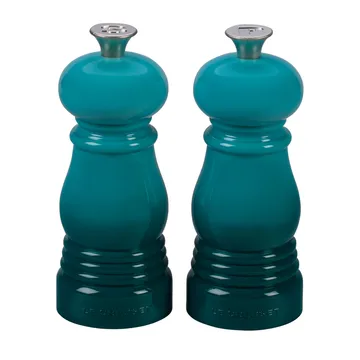 Ten elegancki zestaw młynków do soli i pieprzu 11 cm od Le Creuset jest wykonany z mocnego akrylu, który jest odporny na uderzenia i zadrapania. Obracając małą gałką ze stali nierdzewnej, regulujesz grubość mielenia, a wszystkie kolory oprócz Black i Creme są barwione tak, aby pasowały do kamionki i żeliwa od Le Creuset. Jest to zarówno stylowy, jak i praktyczny element na kuchennym blacie!