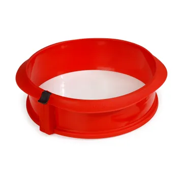 Tortownica ze spodem Lékué, czerwona to wyjmowalna silikonowa forma do ciast z ceramiczną podstawą do wygodnego pieczenia i serwowania. Ceramika jest odporna na zarysowania, stabilna i wytrzymuje wysokie temperatury. Elastyczne, lecz wytrzymałe ścianki formy mają powłokę non-stick, ułatwiającą wyjmowanie ciasta. Dzięki sprytnym klipsom systemu formy i silikonowym uszczelkom otwieranie i zamykanie przebiega bez problemów. Podawaj bezpośrednio z piekarnika na stół, aby za każdym razem cieszyć się wyjątkowym doświadczeniem.