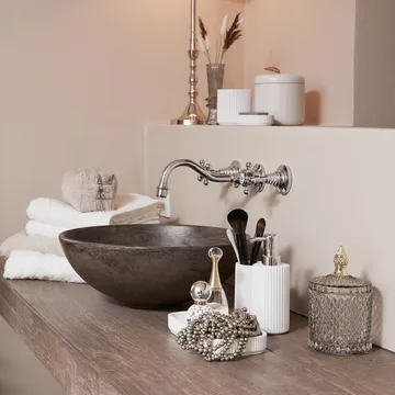 Miya słoik do przechowywania z pokrywką Ø10,5 cm jest luksusowym słoikiem, który nadaje elegancki i klasyczny akcent Twojemu wnętrzu. Pasuje równie dobrze do wszystkich pomieszczeń w domu, w których chcesz mieć ekskluzywne miejsce do przechowywania swoich drobiazgów. Łącząc kilka słoików, możesz również stworzyć dekoracyjny element, który jest zarówno ładny, jak i praktyczny.