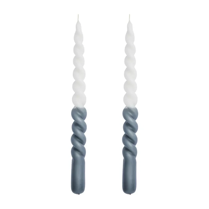 Świeczki skręcone dwukolorowe Twisted 25 cm, 2-pak od duńskiej Lene Bjerre zawiera dwie podłużne i pięknie skręcone świece wykonane z wosku parafinowego. Skręcony kształt nadaje świecom elegancki i ekskluzywny wygląd. Umieść swoje skręcone świece na stole obiadowym, stoliku kawowym lub w oknie dla przytulnej atmosfery w pokoju.