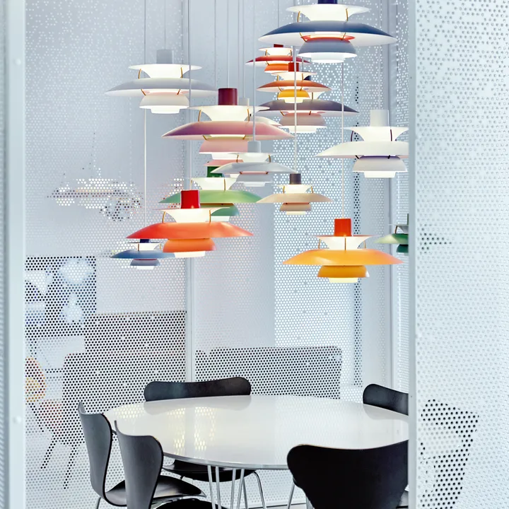 Lampa wisząca PH 5 MINI od Louis Poulsen to, jak sama nazwa wskazuje, mniejsza wersja legendarnej lampy wiszącej PH 5. Oprawa emituje całkowicie nieoślepiające światło zarówno w dół, jak i na boki, dzięki czemu idealnie nadaje się na przykład jako lampa nad stołem w jadalni. Sufitowa lampa wisząca została zaprojektowana przez Poula Henningsena z trzema kloszami, które kierują światło głównie w dół, wraz z dodatkowym kloszem o wyglądzie trąbki u góry, który oświetla obszar nad trzema dolnymi kloszami. Charakterystyczną cechą tej lampy są małe kolorowe klosze dodane w celu zapewnienia najwyższego komfortu oświetlenia dla użytkownika. Kultowy system trzech kloszy został zaprojektowany przez Poula Henningsena w latach 1925-1926, kiedy to we współpracy z Louisem Poulsenem zaprojektował pierwsze lampy PH na wystawę w Paryżu. W tym przypadku przyjął podejście naukowe, ponieważ lampa opiera się na spirali logarytmicznej, matematycznej spirali występującej w wielu miejscach w przyrodzie. Zapewnia to równomierny rozkład światła na całej krzywiźnie klosza. Numery lamp PH odnoszą się do wielkości kloszy, a litery pochodzą od inicjałów projektanta. Lampa sufitowa jest dostępna w różnych kolorach, dzięki czemu można znaleźć taką, która pasuje do domu. Metalowe warianty nie są poddawane obróbce i z czasem nabiorą pięknej patyny. Zapraszamy do zapoznania się z szeroką gamą lamp PH.