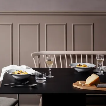 Rhombe talerz głęboki biały od Lyngby Porcelæn jest wykonany z porcelany pokrytej błyszczącym szkliwem z dekoracyjnym wzorem reliefowym. Ponadczasowy wzór sprawia, że talerz nadaje się zarówno na co dzień, jak i na wyjątkowe okazje. Uzupełnij go o inne produkty z serii Rhombe, takie jak miski, kubki i talerze na ciasto.