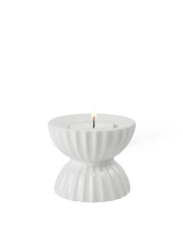 Świecznik Lyngby Tura Ø8 cm od Lyngby Porcelæn jest wykonany z porcelany z takim samym żebrowanym wzorem jak dobrze znany wazon Lyngby. Mały świecznik został zaprojektowany przez Philipa Bro Ludvigsena, ma okrągły kształt z wyraźnie zaznaczoną talią – co nawiązuje do hiszpańskiej nazwy „Tura”. Połącz świecznik z innymi częściami z tej samej serii lub niech będzie piękną dekoracją samodzielnie.