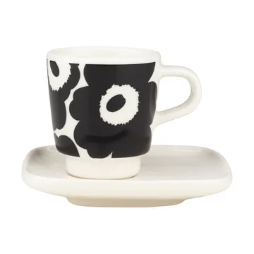 Filiżanka do espresso Unikko ze spodkiem, 2 części, Black-white Marimekko