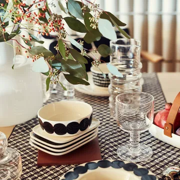 Stwórz prostą, ale jednocześnie zabawną aranżację stołu z Räsymatto podstawka od Marimekko, zaprojektowaną przez Sami Ruotsalainen z wzorem stworzonym przez projektantkę Maija Louekari. Podstawka wykonana jest z wysokiej jakości kamionki z klasycznymi czarno-białymi kropkami, które charakteryzują serię Räsymatto, co po fińsku oznacza chodnik. Mała podstawka doskonale nadaje się na przekąski, desery lub inne drobne przysmaki i można ją łatwo dopasować do innych serii porcelany od Marimekko!