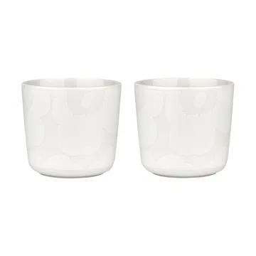 Kubek bez ucha Unikko 20 cl 2 szt. od finskiej marki Marimekko zdobiony jest pięknym wzorem Unikko i doskonale nadaje się na kawę, herbatę lub gorącą czekoladę. Kubek został zaprojektowany przez Samiego Ruotsalainena, a wzór przez Maiję & Kristinę Isola. Wzór Unikko powstał w 1964 roku po tym, jak założycielka Marimekko, Armi Ratia, ogłosiła zakaz używania wzorów kwiatowych. Jednak Maija Isola udało się przekonać ją dzięki swoim cudownym kwiatom maku i Unikko weszło do produkcji. Od tego czasu stał się jednym ze znaków rozpoznawczych Marimekko. Połącz swoje kubki z innymi produktami z tej samej serii, aby uzyskać spójne nakrycie stołu.