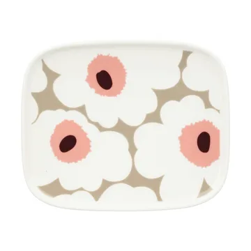 Unikko talerz 12x15 cm od Marimekko to prostokątna półmisek ozdobiona ikonicznym wzorem Unikko, zaprojektowanym przez Maija Isola. Wykonana z trwałej kamionki, nadaje się zarówno do codziennego użytku, jak i na specjalne okazje — można myć w zmywarce, używać w piekarniku, kuchence mikrofalowej i zamrażarce, co czyni ją wyjątkowo praktyczną w kuchni. Prosty kształt i mocny wzór sprawiają, że talerz jest idealny do podawania małych dań, wypieków lub jako dekoracyjny element na stole, który podkreśla potrawę. Przed użyciem usuń naklejkę z dna.