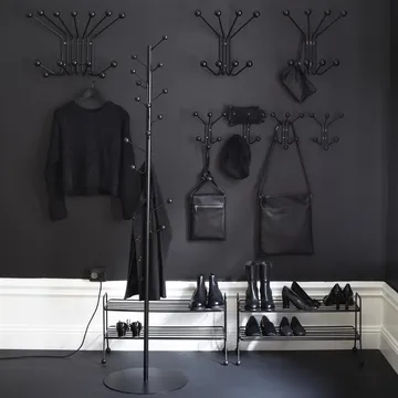 Piękna Bill Shoe Shelf od szwedzkiej firmy Maze wprowadza porządek w przedpokoju i staje się najlepszym przyjacielem butów. Bill Shoe Shelf został zaprojektowany przez Louise Hederström i ma retro wygląd z metalu z drewnianymi nóżkami. Stylowa półka na buty świetnie wygląda w połączeniu z wieszakiem na ubrania z tej samej serii!