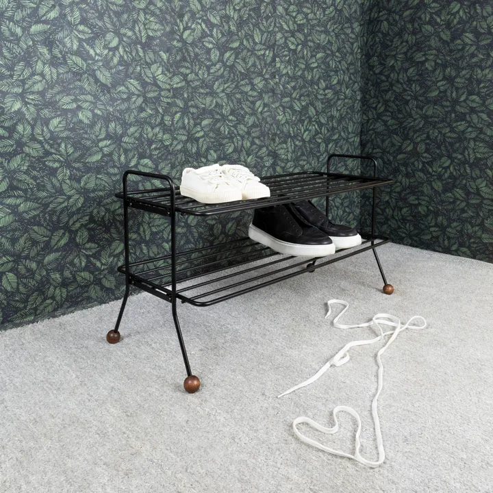 Piękna Bill Shoe Shelf od szwedzkiej firmy Maze wprowadza porządek w przedpokoju i staje się najlepszym przyjacielem butów. Bill Shoe Shelf został zaprojektowany przez Louise Hederström i ma retro wygląd z metalu z drewnianymi nóżkami. Stylowa półka na buty świetnie wygląda w połączeniu z wieszakiem na ubrania z tej samej serii!
