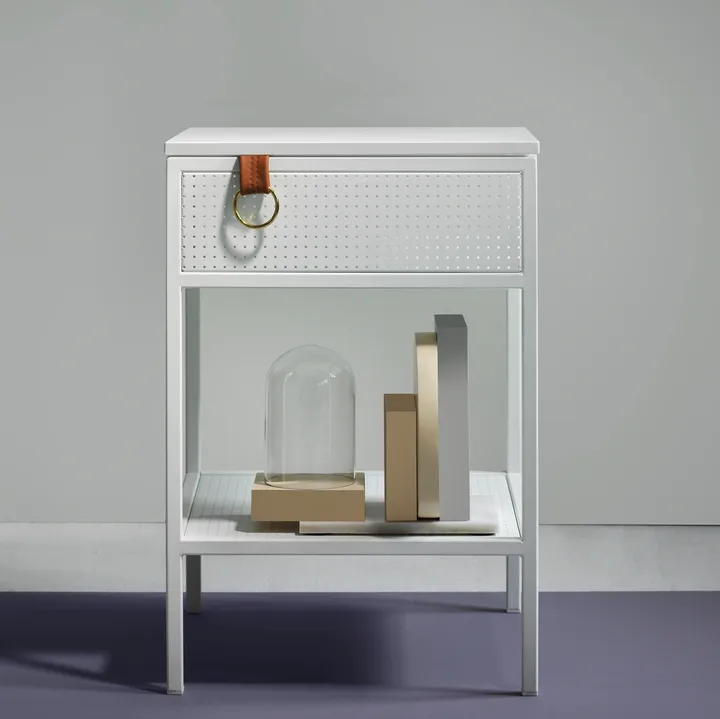 Tracy stolik boczny, umieszczony po lewej stronie z marki Maze, to piękny stolik z ekskluzywnymi detalami, który doskonale nadaje się do wielu zastosowań. Stolik ma włoski ceramiczny blat oraz spód wykonany z malowanej proszkowo metalu, który został ręcznie zespawany w Szwecji. Perforowana blacha w górnej części spodu ukrywa szufladę, a dolna półka dobrze nadaje się do przechowywania na przykład książek lub czasopism. Jest to lewostronna wersja, ale Tracy dostępny jest również w wersji prawostronnej, dzięki czemu można je ustawić obok łóżka. Stolik można również wykorzystać jako stolik kawowy lub jako dodatkowy mebel przykładowo w przedpokoju. Wybierz spośród różnych wersji.