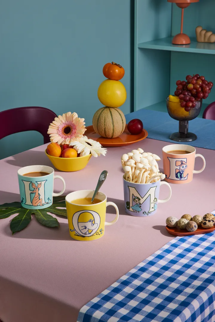 Kubek ABC Muminki 40 cl od fińskiej marki Moomin Arabia wykonany jest z wytrzymałego szkła i porcelany. Każdy kubek z kolekcji ma własną literę i po raz pierwszy kolekcja Muminków z Arabii została ozdobiona wspaniałymi ilustracjami liter od Tove Jansson z trolla Muminków fantastyczny baśniowy świat - w którym tak ważna jest wspólnota, otwartość, przyjaźń i rodzina. Muminki z Arabii zaprezentowały swoją kolekcję alfabetu jesienią 2022 roku i są produkowane we współpracy od A do Z z Muminkami – inicjatywą Muminków mającą na celu szerzenie radości czytania i pisania wśród dzieci, młodzieży i dorosłych. Nowy, większy kubek jest również idealny dla każdego, kto chce cieszyć się herbatą, kawą lub zupą lub deserem w dużym kubku. Kubki Muminków z Arabii to popularne przedmioty kolekcjonerskie, które nadają się zarówno na kawę z przyjaciółmi, jak i na śniadanie z rodziną. Podaruj kubek z literą komuś, kogo kochasz, lub wybierz swój ulubiony i nie krępuj się łączyć z innymi produktami od kolekcji Moomin Arabia's ABC, aby uzyskać jednolite nakrycie stołu i piękną kolekcję.