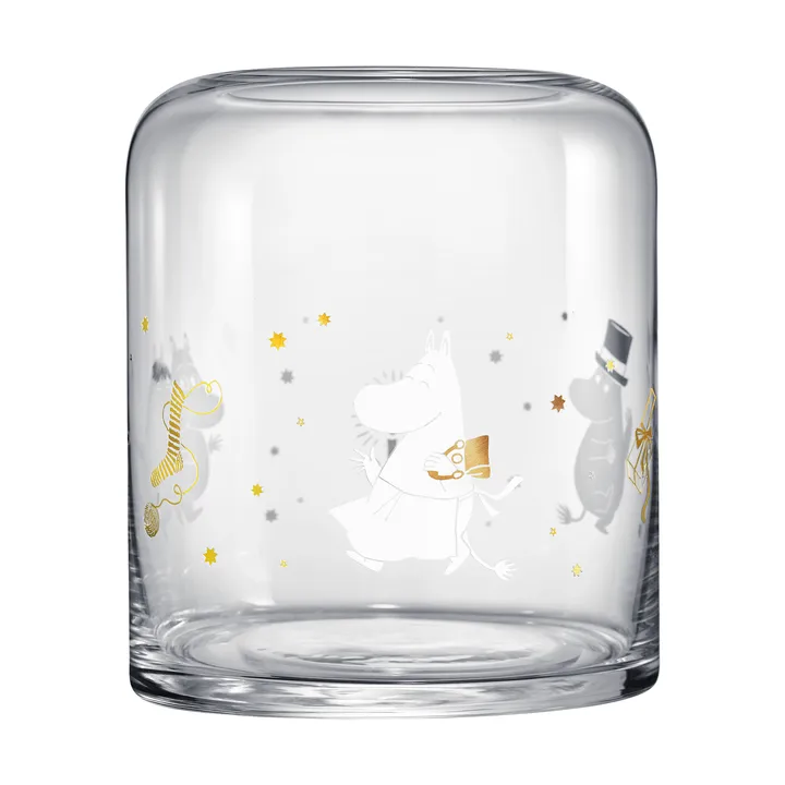Lampion na świecę Moomin 18 cm od Muurla jest zaprojektowany przez Kata Nowak-Kiminki i wykonany ze szkła. Kolekcja Sparkling stars posiada złote detale, które dodają blasku i połysku. Wszechstronny lampion może być używany jako lampion na świecę, miska na małe smakołyki lub wazon na małą kompozycję kwiatową. Z motywami ze wspaniałego świata Muminków, lampion staje się czarującą i praktyczną ozdobą w Twoim domu na Boże Narodzenie.