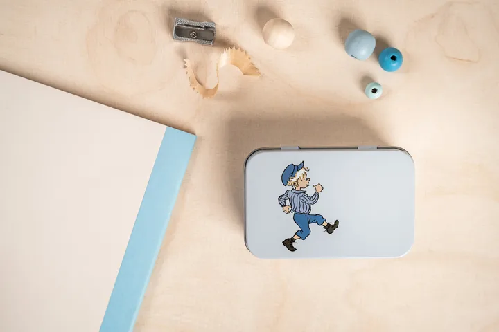 Emil pojemnik z blachy 10x6,5x3 cm od Muurla jest wykonany z solidnej blachy i ozdobiony uroczą ilustracją Emila z Lönnebergi, zaprojektowaną przez Katę Nowak-Kiminki. Ten mały pojemnik z pokrywką i zawiasem jest idealny do przechowywania najcenniejszych drobiazgów. Hołd dla oryginalnych ilustracji Björna Berga.