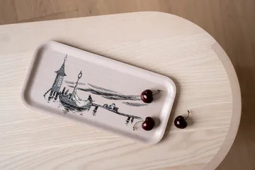 Taca Moomin 13x27 cm od Muurla to prostokątna mała taca do serwowania wykonana z melaminowanej sklejki brzozowej. Urocza taca ozdobiona jest motywami Moominów ze wspaniałego świata Tove Janssona, co sprawia radość podczas posiłków lub przerw na kawę. Trwały i łatwy w pielęgnacji design sprawia, że taca jest idealna do serwowania jedzenia i napojów, a także jako dekoracyjny element w kuchni. Odkryj szeroki asortyment tac i innych produktów od Muurla ozdobionych ukochanymi trollami.