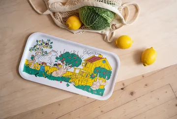 Taca Pippi 22x43 cm od Muurla jest wykonana ze sklejki brzozowej i ozdobiona ikoniczną ilustracją Ingrid Vang Nyman. Taca przedstawia Pippi Långstrump wracającą do Villa Villekulla, niosącą swojego konia. Zaprojektowana przez Kata Nowak-Kiminki.