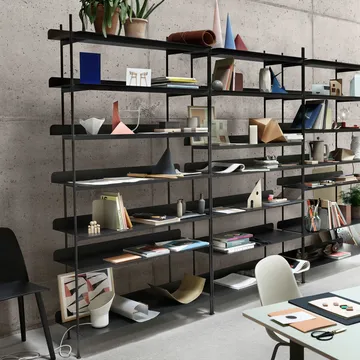Compile configuration 1 system regałów od Muuto, zaprojektowany przez Cecilie Manz, to solidny system regałów z malowanej proszkowo stali. Z giętymi półkami i rurkami stalowymi zapewnia prostą i stabilną konstrukcję. Dostępny w czerni, bieli i szarości oraz w różnych kombinacjach, aby dopasować się do Twoich potrzeb i nadać pomieszczeniu elegancki charakter. Idealny zarówno do domu, jak i biura.