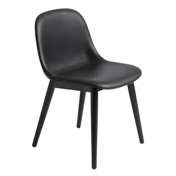 Fiber Side Chair z drewnianymi nogami, Black leather-black Muuto