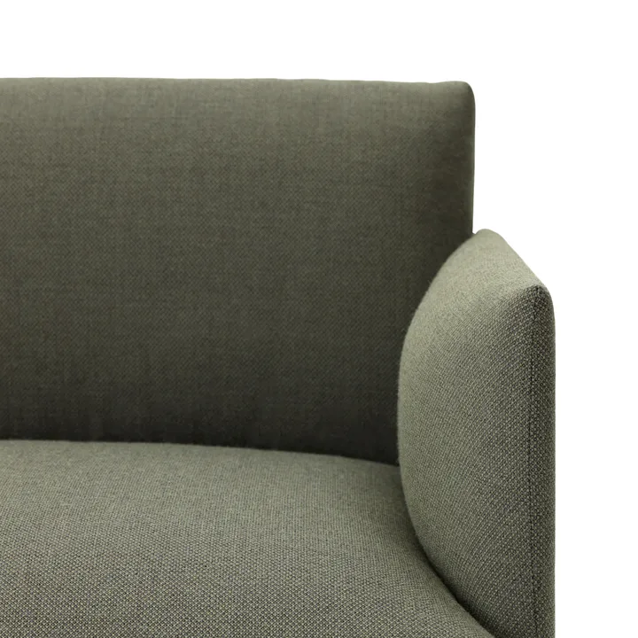 Sofa 3-osobowa Outline tkanina od Muuto została zaprojektowana przez norweskich projektantów Anderssena i Volla. Inspirację do sofy duet projektantów czerpał z nowoczesnej architektury, co odzwierciedla się w sposobie, w jaki części sofy nachodzą na siebie. Sofa ma elegancki i kanciasty design, który jest bardzo zachęcający. Dzięki swojej dużej głębokości siedzenia i wysokim podłokietnikom jest wygodna do zawinięcia się. Pianka poliuretanowa w sofie sprawia, że jest miękka do siedzenia i utrzymuje swój kształt. Wysokie i cienkie nogi nadają jej również lekkości.