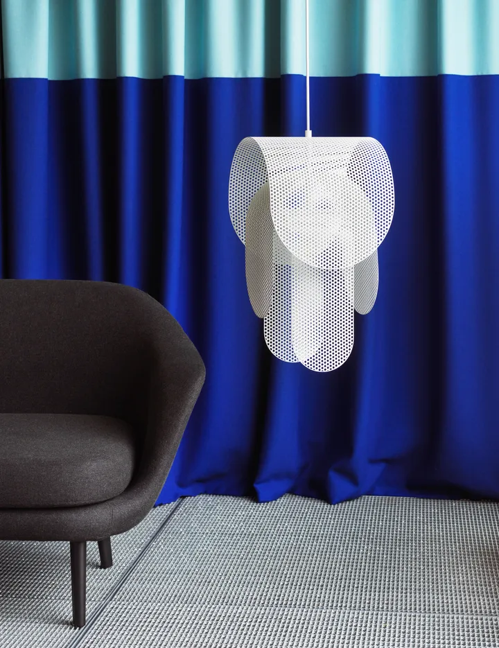 Lampa wisząca Superpose od Normann Copenhagen to elegancka i ekspresyjna lampa zaprojektowana przez Frederik Kurzweg Design Studio. Składa się z trzech zgiętych i zaokrąglonych, perforowanych blach stalowych, które współgrają, pozwalając na delikatne, rozproszone światło na zewnątrz oraz skierowane światło w dół, jednocześnie tworząc dzięki perforacjom żywe cienie w pomieszczeniu. Lampa wisząca Superpose sprawdzi się zarówno nad stołem jadalnym, jako nastrojowe oświetlenie w kąciku do czytania, jak i jako efektowny detal sufitowy dodający charakteru wnętrzu. Idealne połączenie formy i funkcji dla osób pragnących ciepłej, graficznej atmosfery.