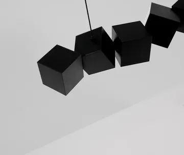 System blockchain 17 pendel od Oblure to arcydzieło zaprojektowane przez Markusa Johanssona. Wykonana z aluminium, akrylu i stali, ta lampa wisząca składa się z 17 kwadratowych kostek połączonych w pozornie losowy sposób. Co druga kostka ma dedykowany panel LED z dyfuzorem akrylowym, który rozprowadza równomierne światło w dół.