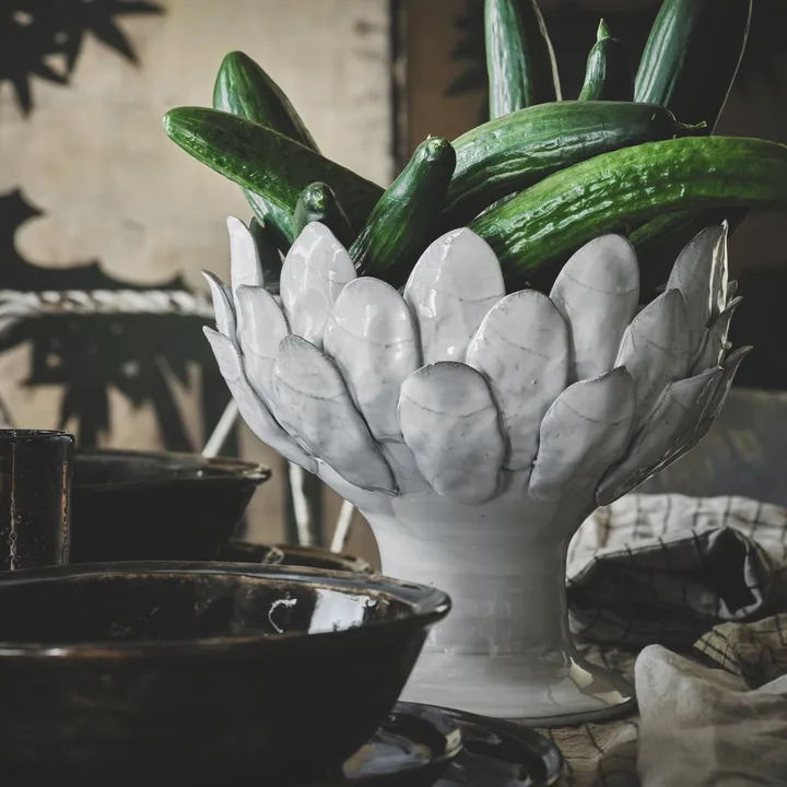 Marielle donica mała Ø23,5 cm od Olsson & Jensen to unikalna donica z ceramiki, która nadaje domowi to coś wyjątkowego, niezależnie od tego, czy używasz jej jako donicy do rośliny, czy wybierzesz użycie jej jako miski serwingowej na zastawionym stole. Donica stoi stabilnie na szerokiej podstawie i ma piękny, przypominający liście wzór na górze.