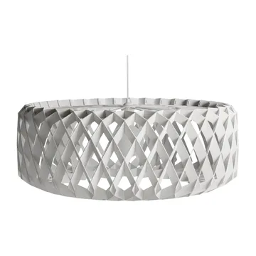 Lampa wisząca Pilke Signature Ø80 cm od Pilke to duża lampa sufitowa z brzozy, ręcznie wykonana w Finlandii, całkowicie bez użycia śrub lub kleju. Cylindryczny kształt lampy i podobny do diamentu wzór nadają jej lekkiego i przewiewnego wyglądu, a światło może pięknie prześwitywać przez szczeliny. Rozmiar klosza sprawia, że lampa wisząca staje się pięknym centralnym punktem w salonie, biurze lub w dużym holu.