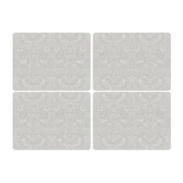 Stwórz piękną i stylową aranżację stołu za pomocą podkładek na stół Strawberry Thief 30x40 cm 4-pak od Pimpernel. Podkładki opracowane we współpracy z Morris & Co chronią delikatne powierzchnie przed gorącymi talerzami i śladami po wodzie, idealnie nadając się zarówno na co dzień, jak i na specjalne okazje. Klasyczny motyw przedstawia ptaka łakomego na truskawki wśród kwiatów i liści. Praktyczna dolna strona podkładek z korka sprawia, że podkładki leżą stabilnie na stole i chronią powierzchnię stołu. Odporna na ciepło powierzchnia wytrzymuje temperatury do 100 °C.
