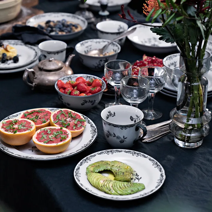 Ostindia czarny talerz jest częścią kontynuacji niezwykle popularnej i lubianej niebiesko-białej serii Ostindia od szwedzkiej firmy Rörstrand. Czarny kolor nadaje klasycznemu designowi elegancki i nowoczesny charakter. Talerz stanie się pięknym elementem na nakrytym stole, zarówno na co dzień, jak i od święta.