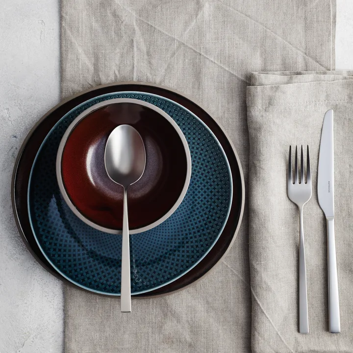 Talerz Junto 22 cm od niemieckiej firmy Rosenthal ma naturalny i ręcznie wykonany wygląd z przytłumionymi kolorami i organicznymi kształtami. Specjalnie opracowane szkliwo kolorowe sprawia, że charakterystyczny wzór diamentowy pojawia się w ekscytującym kontraście jasnych i ciemnych tonów. Dzięki serii Junto chcemy w nowatorski i zabawny sposób zebrać ludzi i ich miłość do jedzenia z całego świata, aby wspólnie spożywać posiłki, dobrze się bawić i celebrować życie!