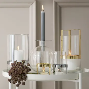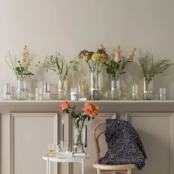 Wazon Hold średni to piękny wazon od szwedzkiej firmy Sagaform zaprojektowany przez Pascal Charmolu. Wazon składa się z pozłacanego elementu metalowego, który jest ruchomy i można go przesuwać w górę i w dół. Podnosząc metalowy element, możesz dostosować wazon do długości kwiatów, które w nim umieścisz. Szkło wazonu to piękne dmuchane szkło. Jest to elegancki i stylowy wazon, który pasuje do większości domów. Wazon jest bardzo cenionym prezentem.