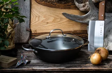 Patelnia Satake z powłoką azotowaną od Satake jest wykonana w 100% z żeliwa i poddana azotowaniu dla zwiększenia twardości. Patelnia zapewnia trwałość, mniejsze zapotrzebowanie na tłuszcz oraz łatwe czyszczenie. Wskazówki pielęgnacyjne: myć ręcznie ciepłą wodą i ekologicznym środkiem czyszczącym. Unikać gwałtownych zmian temperatury i nie myć w zmywarce. Działa jak klasyczna patelnia żeliwna, z wydajnością ze stali nierdzewnej.