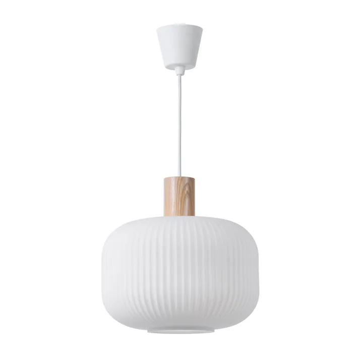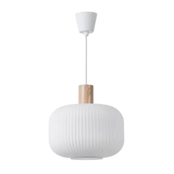 Lampa sufitowa Fair Ø30 cm od Scandi Living to stylowa i harmonijna lampa sufitowa łącząca skandynawską prostotę z ciepłym charakterem. Żłobiony klosz z matowego szkła rozprasza miękkie, przyjemne światło tworząc przytulną atmosferę, natomiast cylindryczny element z jesionu wprowadza naturalny kontrast. Połączenie szkła i drewna tworzy zrównoważioną całość, dzięki czemu Lampa sufitowa Fair jest eleganckim wyborem nad stołem jadalnym, w sypialni lub jako dyskretne akcentowe oświetlenie w przedpokoju. Ponadczasowa lampa, która podnosi jakość oświetlenia domu subtelną elegancją i przemyślanym designem.