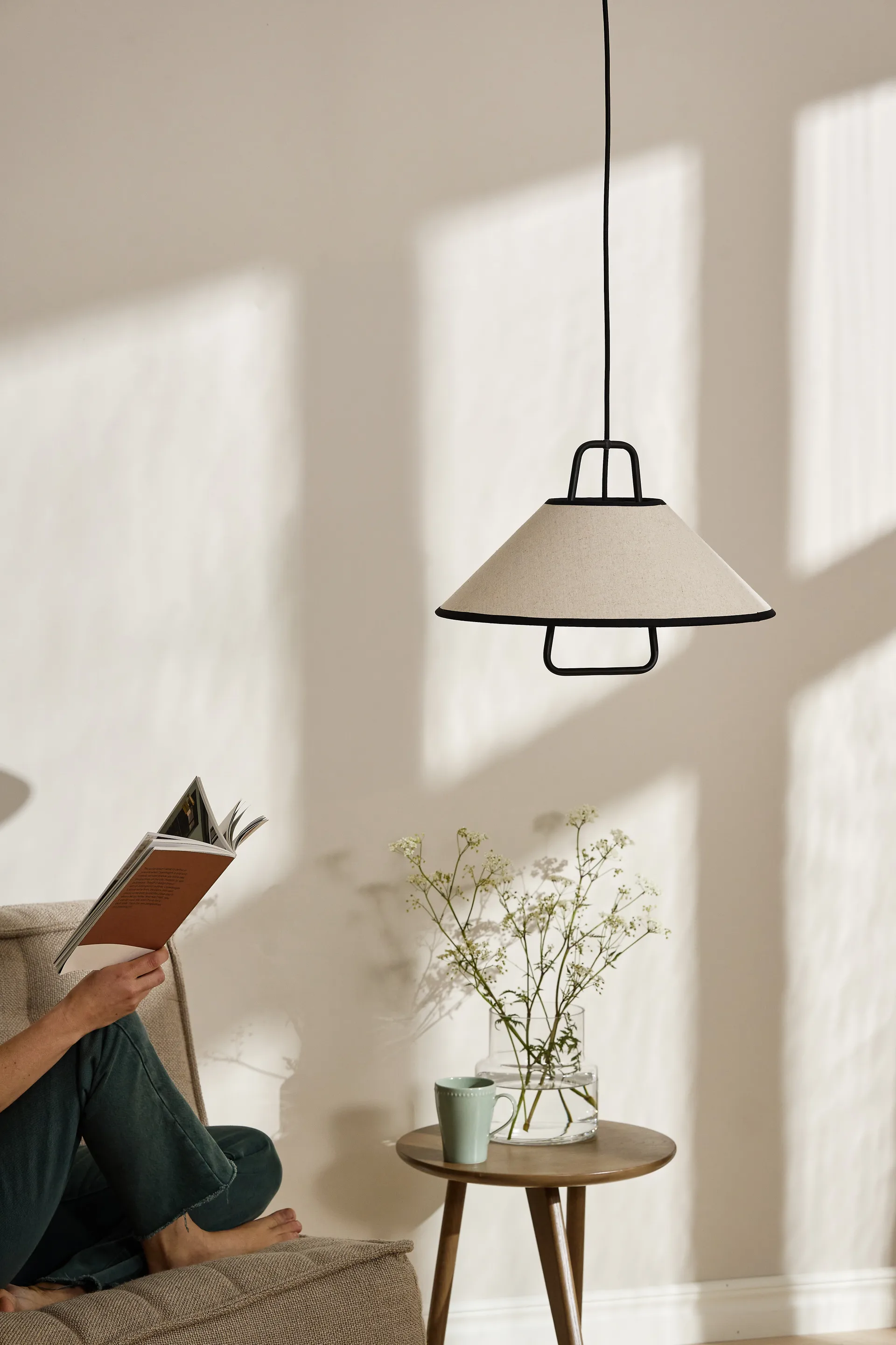 Lampa wisząca Moss Ø42 cm od Scandi Living ma metalową podstawę podtrzymującą lniany klosz z przeszytymi brzegami. Forma inspirowana jest stylem retro w harmonijnym połączeniu z wyrazem japandi i prostotą kontrastów. Lampa emituje ciepłe, przyjemne światło, które tworzy przytulną atmosferę. Idealna nad stołem jadalnym, w salonie lub sypialni, gdzie sprawdza się zarówno jako nastrojowe oświetlenie, jak i stylowy element dekoracyjny.