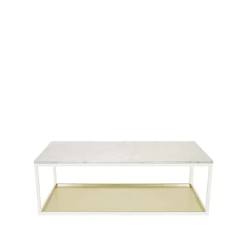 marmur biały, podstawa lakierowana na biało, talerz mosiężny