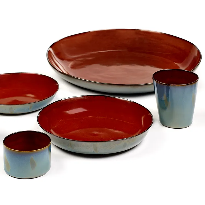 Talerz z kamionki z serii Terres de Rêves, który może być również używany jako miska do serwowania. Reaktywne szkliwo nadaje każdemu egzemplarzowi całkowicie unikalny wygląd i ręcznie wykonany akcent. Zewnętrzna i wewnętrzna strona talerza mają dwa różne kolory, co dodaje dodatkowy wymiar do serii zaprojektowanej przez Anitę Le Grelle dla Serax. Mieszaj i łącz z pozostałymi elementami serwisu Terres de Rêves lub wybierz jeden lub dwa kolory, które lubisz, aby uzyskać bardziej spójny wygląd.