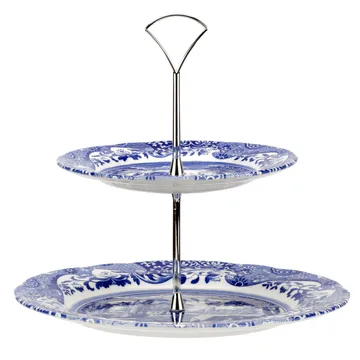 To cudowna patera na ciasto z serii Blue Italian od marki Spode to prawdziwa przyjemność, na dwa poziomy wypełniona ciastkami i wypiekami, idealna na przyjęcia i uroczystości. Piękna biało-niebieska porcelana była produkowana już od 1816 roku w Anglii, a jej motyw inspirowany jest włoską wsią oraz obramowany bordiurą z orientalnego wzoru Imari. W serii znajdziesz całą potrzebną porcelanę na obiady lub kawowe przyjęcia takie jak talerze, miski, filiżanki i półmiski, które razem tworzą cudowne nakrycie stołu.