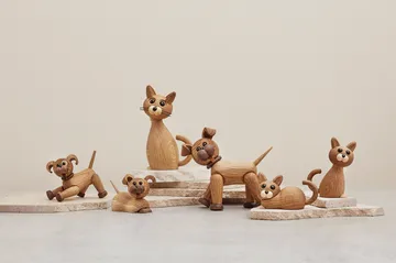 Dekoracja w postaci psa Happy 13,5 cm od Spring Copenhagen to urocza drewniana figurka zaprojektowana przez Chresten Sommer, która celebruje ciepły wyraz pyska psa. Ręcznie wykonana z kilku elementów, Happy daje zabawną ruchomość — siedzi, stoi lub leży — i zachęca zarówno do zabawy, jak i do dekoracji wnętrz. Wykonana z drewna dębowego, orzechowego i jesionowego z certyfikatem FSC, z małym językiem z ekologicznej skóry, łączy jakość i trwałość. Umieść Happy na półce, biurku lub w pokoju dziecięcym, by wprowadzić codzienną radość dla całej rodziny.