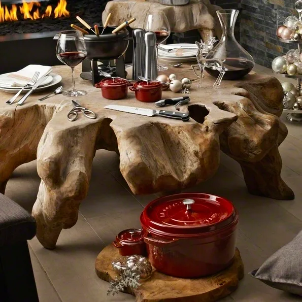 Zestaw do fondue Staub 2,35 l umożliwia spotkanie się przy stole i delektowanie się naprawdę smaczną fondue - klasycznym szwajcarskim daniem. Zestaw pochodzi od francuskiej firmy Staub i zawiera widelce, palnik oraz wysokiej jakości żeliwny garnek z emaliowaną powierzchnią dla dodatkowej ochrony. Otwarcie garnka jest zaprojektowane z ośmioma wylewkami, aby zapewnić dużo miejsca dla sześciu dołączonych metalowych widelców z drewnianymi rączkami. Dzięki temu zestawowi będziesz mógł zaprosić swoich gości na fondue bulionowe, serowe i czekoladowe.