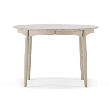 Stół do jadalni Ø115, rozkładany od Stolab to okrągły, rozkładany stół z miejscem na maksymalnie cztery dodatkowe blaty. Projekt autorstwa Marit Stigsdotter i Staffana Linda jest wyraźnym hołdem dla Carla Malmstena i klasycznej serii Lilla Åland, co widać w rozstawionych nogach i przyjemnie toczonej formie. Fazowana krawędź blatu nadaje lekki i elegancki charakter, a jednocześnie konstrukcja pozostaje stabilna i starannie przemyślana. Dzięki harmonijnym proporcjom i klasycznemu charakterowi stół Carl doskonale komponuje się z krzesłami Lilla Åland i staje się naturalnym punktem spotkań w domu — gdzie szwedzkie rzemiosło, tradycja i funkcja łączą się w ponadczasowej równowadze.