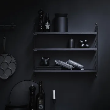 Półka String Pocket jesion barwiony na czarno od String to urocza i stabilna półka ścienna zaprojektowana przez Nisse Strinninga. Z dwoma bocznicami i trzema półkami zapewnia lekkie przechowywanie książek, dekoracji i roślin, jednocześnie eksponując Twoje ulubione przedmioty. Każda półka wytrzymuje do 25 kg, co czyni półkę praktyczną i niezawodną. String Pocket można łączyć, aby tworzyć większe rozwiązania — kup kilka zestawów, aby zbudować unikalną sekcję półek dopasowaną do Twojego domu. Zawsze używaj odpowiednich śrub i kołków do bezpiecznego montażu na ścianie.